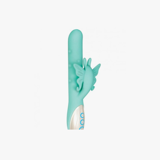 Extra large dual vibrator with butterfly wings. Powerful rabbit clitoral stimulator. Butterfly wings stimulate deep clitoral roots. Embedded shaft beads move up and down for erotic internal stimulation. Two separate motors for shaft and clitorial stimulation.