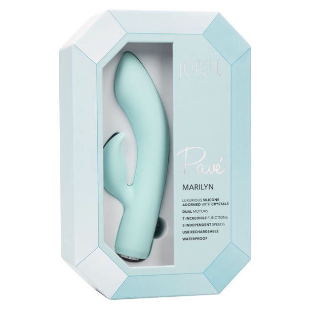 Elegantly crafted dual motor massager flexes and moves with you. Luxurious, Satin Finish Silicone adorned with crystals 7 incredible functions of vibration, pulsation and escalation. 5 independent speeds for each function. Luxury gemstone easy push button operation. May be used in or out of the water. USB rechargeable, charging cord included. One year warranty. Maximum run time 60 minutes. Maximum charging time 120 minutes. Dimensions massager 5 inches by 1.5 inches. Overall 7.25 inches by 2.75 inches. Clitoral stimulator 2 inches by 1 inch. Package 2.5 inches by 6.25 inches by 9.75 inches.